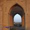 این ورودی از نظر شیوه طاقزنی و تزئینات، مشابه سایر ورودیهای بناست. فقط گچبری زمینه طاقنمای بالای قوس، به جای نقوش با رنگ کنگری، یک دایره تزئینی با ستاره چهارپر در بالای قوس و سایر قسمتهای زمینه را لوزی و ذوزنقههای درهم پر میکند که شبیه دهانه یک کندوی عسل است.