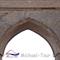 نمای بیرونی ایوان با دیوارههای جانبی خود به وسیله ۳ ردیف آجر برجسته به صورت ۳ طاقنمای عمودی سرتاسری درآمده و طاقنماهای آخری، قاب تزئینی قوس ایوان را تشکیل میدهد. قوس ایوان روی ۲ ستون رفیع با تزئینات گچبری شده بنا گردیده که این ستونها در قسمت پایین تخریب شدهاند و در قسمتهای وسطی به صورت دایره با نقوش کندهکاری شده روی گچ، شامل ستارههای هشتپر و شانزدهپر مزین شده است. تزئینات در قسمت بالاتر به صورت منشور درمیآید که این نقوش کندهکاری شده به صورت ۷ و ۸ دیده میشود. بالای این ستونها یک سرستون تزئینی گچبری شده با نقوش ستارهایشکل ریزتر قرار میگیرد و پاکار قوس ایوان را تشکیل میدهد.