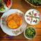 درواقع، منویی در رستوران خونه بر سر میز شما آورده نمیشود. غذای سرو شده در هر روز با روز قبل فرق دارد. مشتریها با رستوران خونه تماس گرفته و میپرسند که « فردا ناهار چی دارید؟». سپس، آقای درخشانی و دوستانشان همان شب برای ناهار فردا تصمیمگیری کرده و روز بعد برای درست کردن غذایی باکیفیت از موادی تازه به خرید میروند. واقعاٌ ایده نو و جذابی است. مگر نه؟! فضای خارج و داخل رستوران خونه واقعاٌ به شکل یک خانه طراحی شده است. کلبه چوبی آبیرنگی که به سبک و سیاق خانههای شمال ایران ساخته شده و سقفی کوتاه و شیبدار و پنجرههای کوچکی دارد. در داخل خانه میز و صندلیهایی را میبینید که فرم رستورانی نداشته و میزهای ناهارخوری هستند که در خانه همه پیدا میشوند. دکوراسیون، دیوارها، کاسه و بشقابها و حتی فرشی که بر روی زمین افتاده، همه و همه حس و حال خانه را برای شما تداعی میکنند. جالب اینجاست که حتی گارسونها هم شکل و شمایل گارسونهای رستورانهای دیگر را ندارند. همگی دانشجویان تئاتر، فیلمنامهنویسی و غیره بوده و حتی یکی از آنها مربی باله هستند. غذاهای رستوران خونه، همگی خانگی و سنتی بوده و حتی کباب هم سرو نمیشود. همه غذاها از جمله هویجپلو، قیمهلاپلو، زرشک پلو با مرغ و ماست مخصوص خونه را در ظرفهای گلدار چینی قدیمی نوش جان میکنید. در میان غذاهای منوی این رستوران، چند غذا با نامهای جالبی نظر شما را جلب میکنند. دو مورد از این غذاها «مرغ مامان شهین» و « تهچین بدری جون» هستند. دستور پخت مرغ مامان شهین را بانویی به همین نام به آشپز رستوران خونه آموزش دادهاند. طعم عالی شربت خیار سکنجبین و بیدمشک رستوران خونه را حتماٌ امتحان کنید. خبر خوش اینکه، میتوانید این رستوران را برای مهمانیهای شخصیتان بهطور کلی رزرو کنید. حتی امکان آشپزی با وسایل آشپزخانه و پذیرایی از مهمانتان را هم دارید. اگر برای تفریح به پارک آبوآتش تهران بزرگ رفتید، حتماٌ سری هم به رستوران خونه بزنید. مطمئناٌ طعم فوقالعاده غذاها و محیط دلنشین این رستوران خاطره خوبی را در ذهنتان بهجای میگذارد. آدرس: چهارراه جهان کودک، به سمت پارک آب و آتش، خیابان شهیدی، انتهای بنبست کمان. شماره تماس: ۴۳۹۷۵-(۰۲۱)